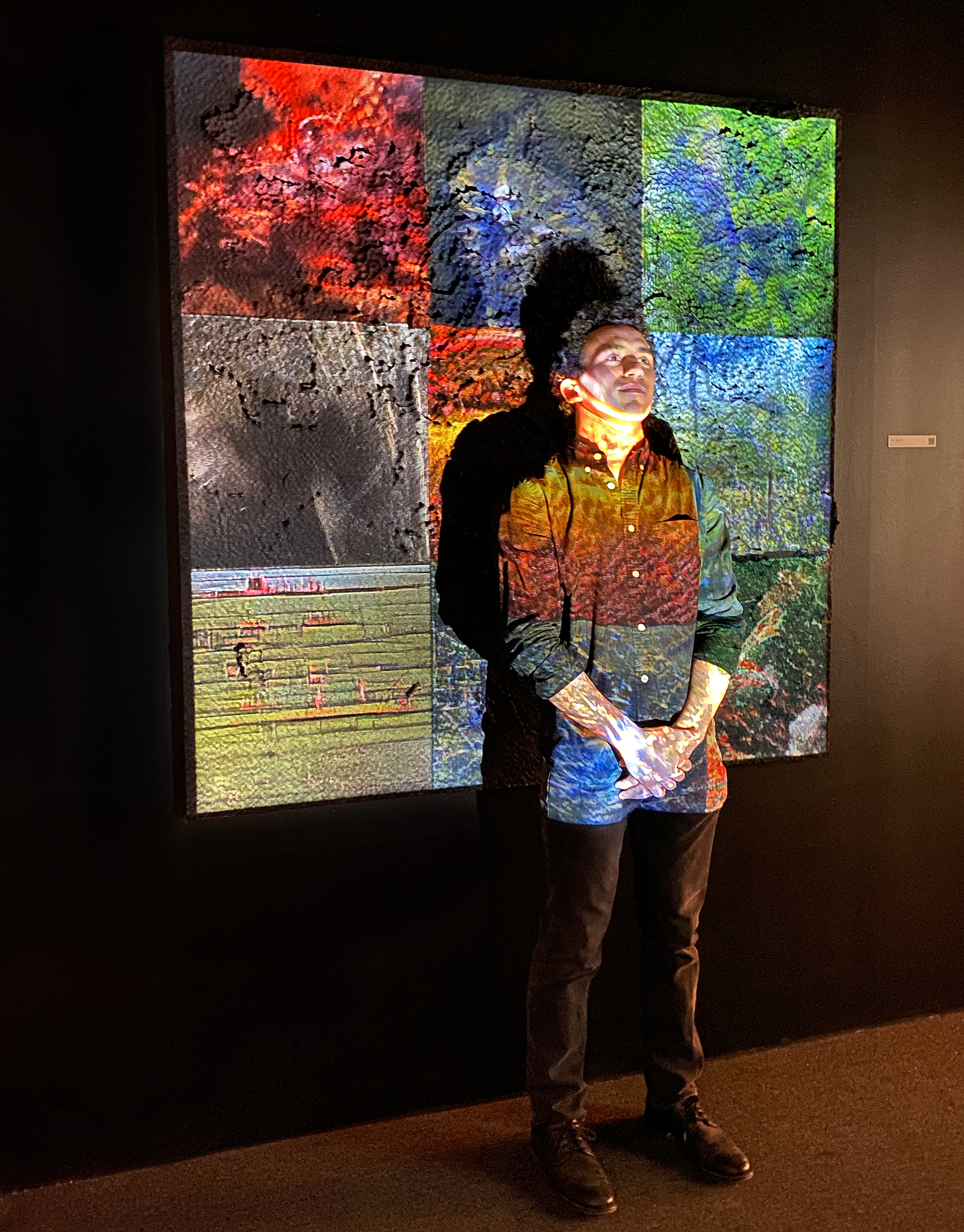 Initially, I created an abstract painting that informed a community experiment. My painting process typically involves blocking colors over a black underlayer, eventually framing entities in my perception. Suspending this work at the initial step, I aimed to render a medium whose ambiguous look would foster rich visual interpretation.