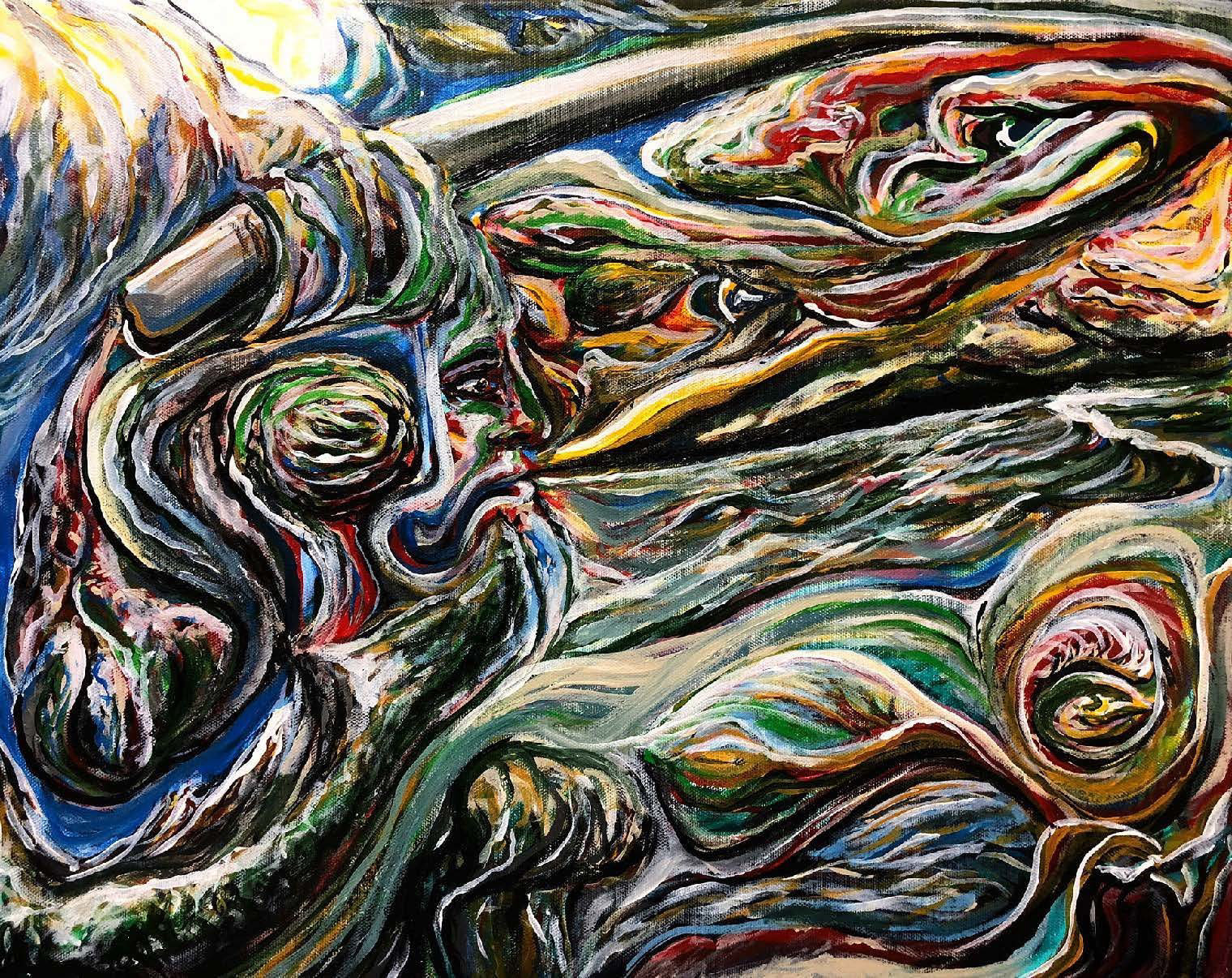 SOLD: "Oxytocin," 2018, Acrylic, 24" x 36"